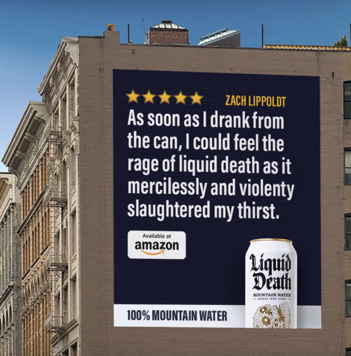 Liquid Death’s focus doesn’t just give it a clear target customer – it gives it a clear target community. That means its brand can be less reliant on expensive paid advertising, and instead slant heavily towards social media and word of mouth. After all, isn’t someone into the goth/metal scene more likely to follow a brand that serves its water in a coffin point-of-sale display? And if you feel like that brand truly knows you, aren’t you more likely to share it with all your fellow metalheads on and off of social media?